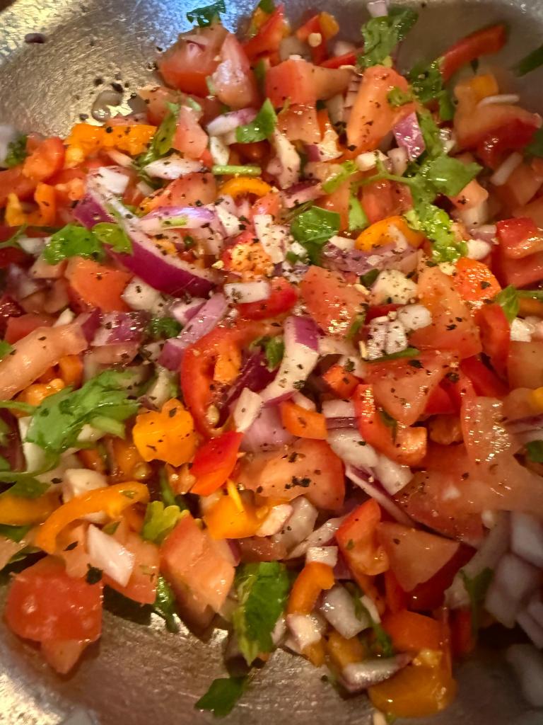 Tomato, Onion, Parsley, EVOO, Lemon Juice, Black pepper, Oregano (4 plant foods)