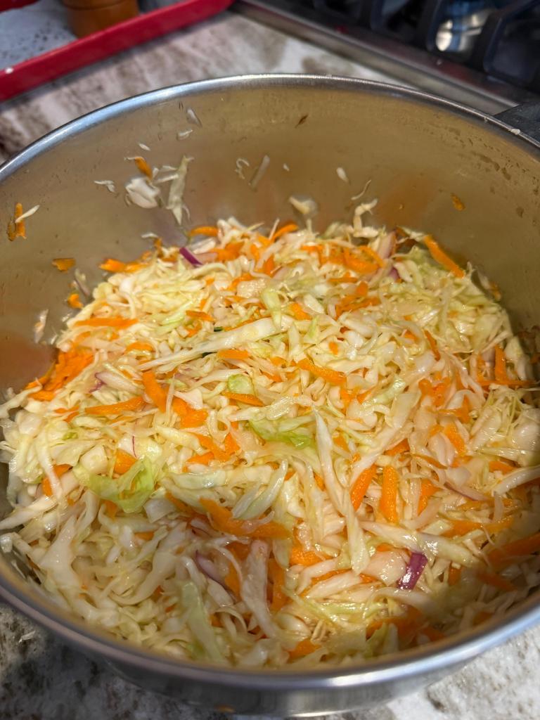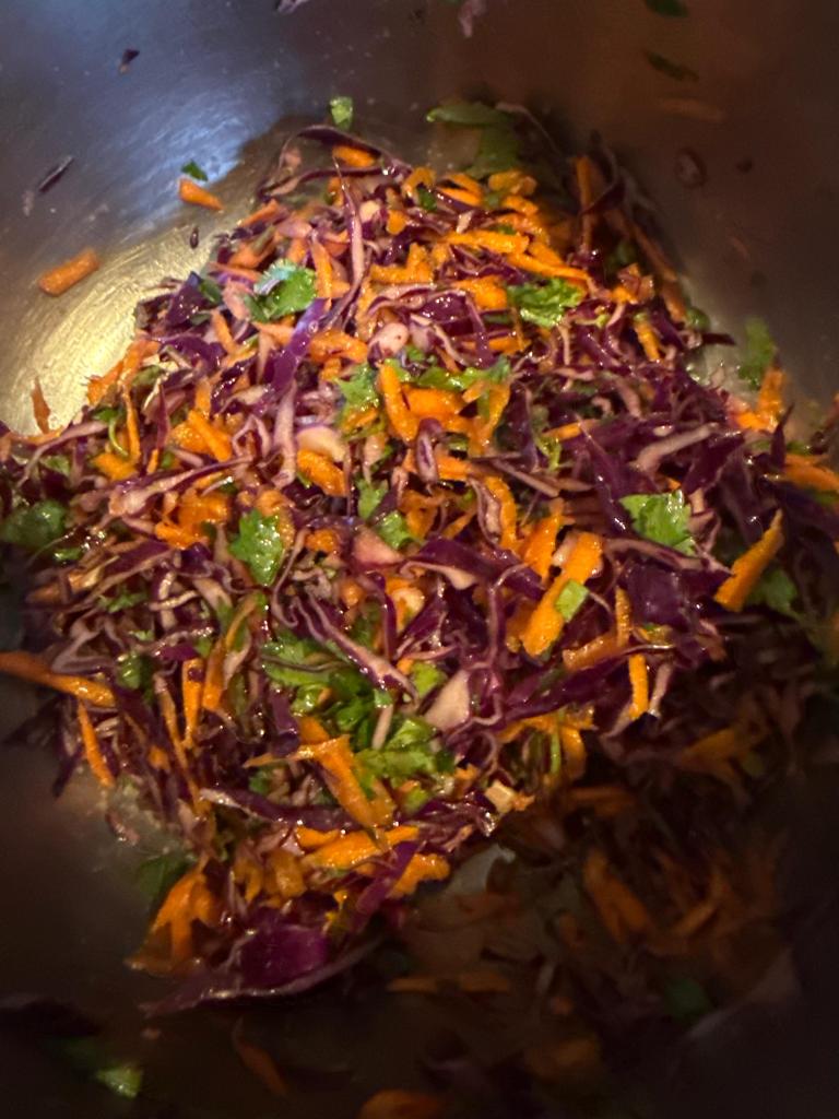 Red cabbage, Carrots, EVOO, Lemon Juice, Cilantro, Green chili (5 plant foods)